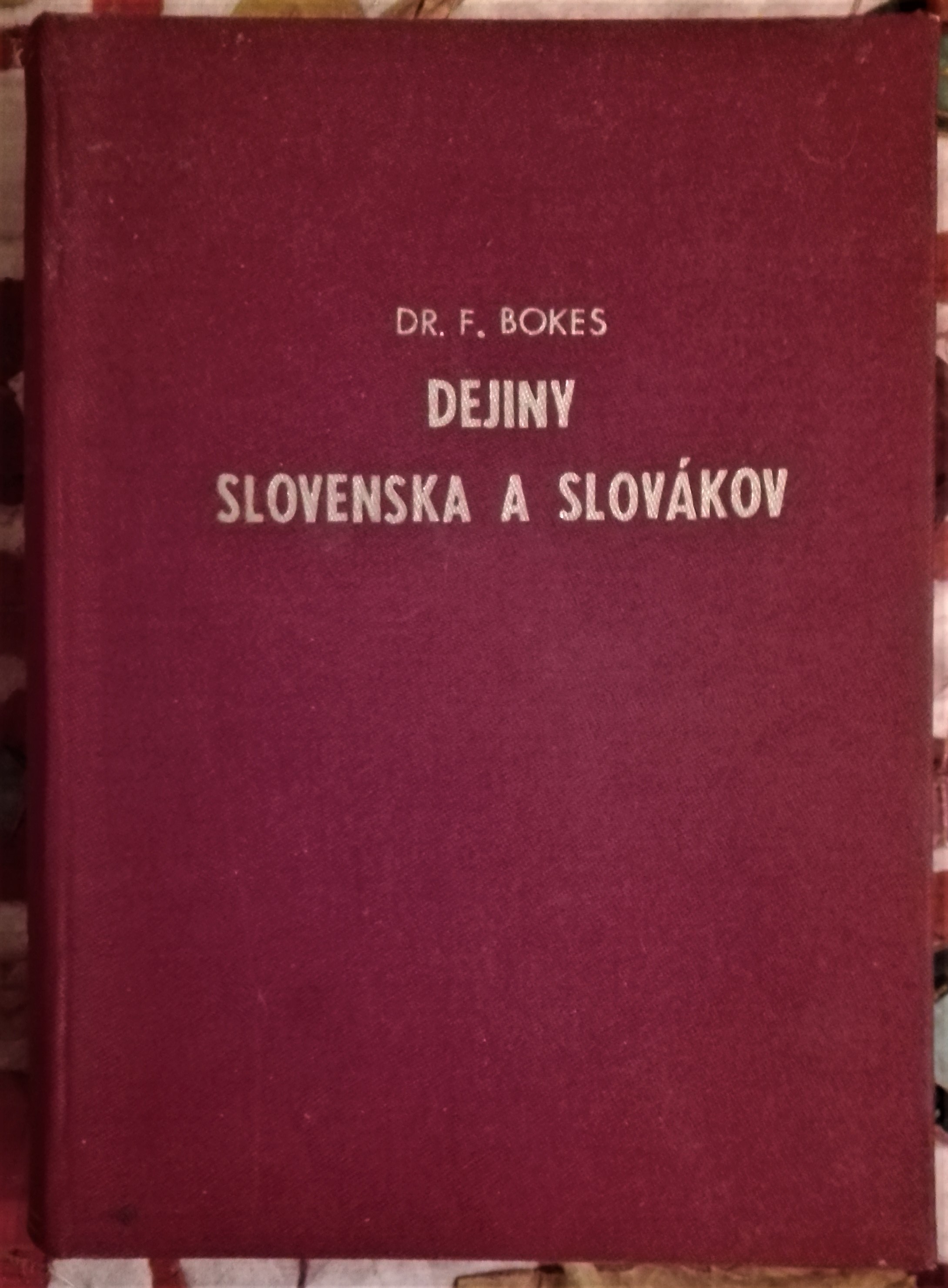 Práca slovenského historika Františka Bokesa (1906 - 1968) prináša ucelený, koncízny pohľad na dejiny Slovenska a jeho obyvateľov od predhistorických čias až po rok 1945. Knihu dopĺňa bohatý domáci i zahraničný bibliografický aparát, množstvo vyobrazení a rozkladacie mapy na prílohách. Krásne zachovaný exemplár.