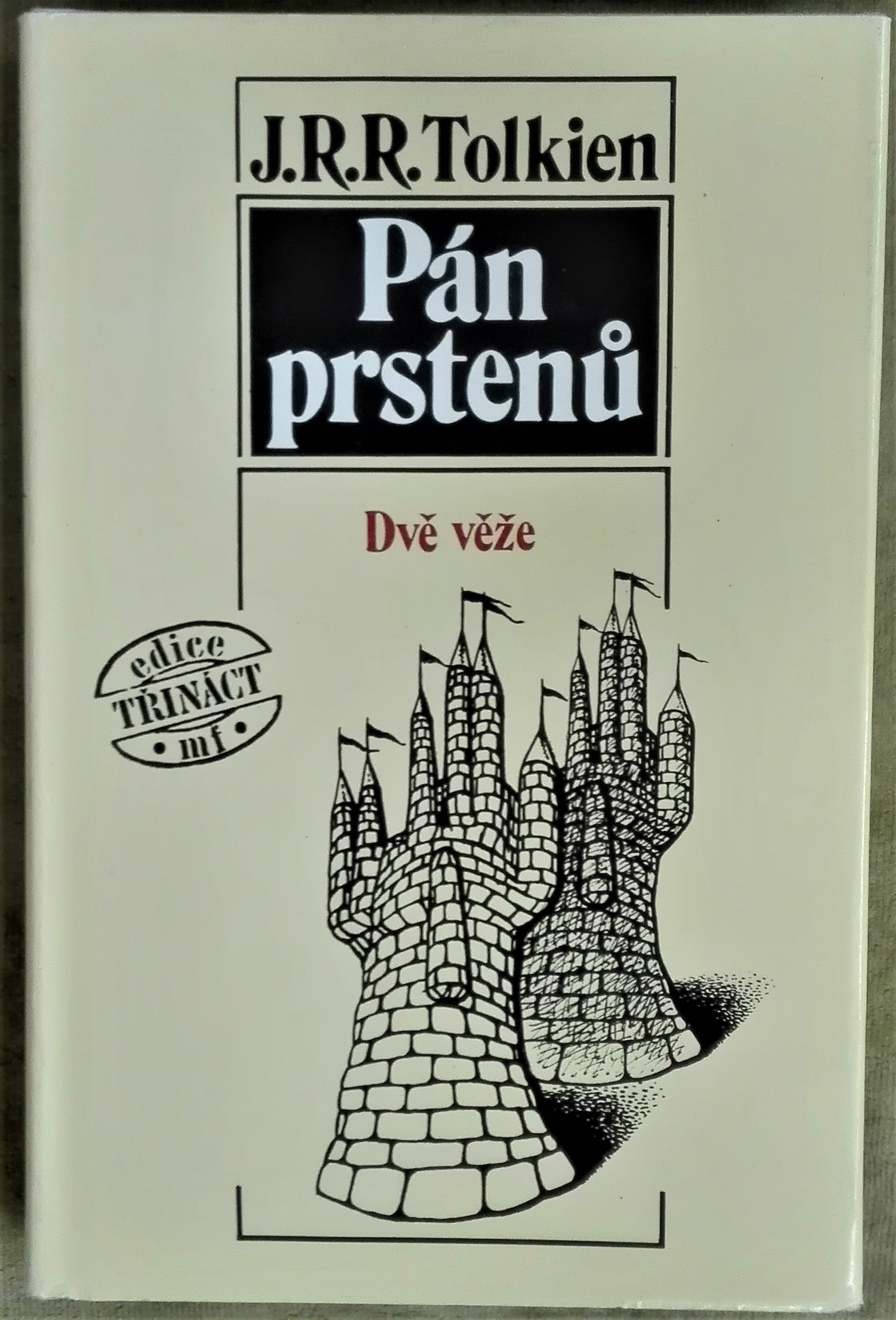 Druhý diel kultovej fantasy trilógie Pán prsteňov v 1. českom vydaní (kniha vyšla v časoch dávno pred tolkien-mániou spôsobenou filmovým spracovaním a okrem pomerne úzkej komunity fandomu o Tolkienovi málokto niečo tušil). Veru, aj také boli kedysi časy :)