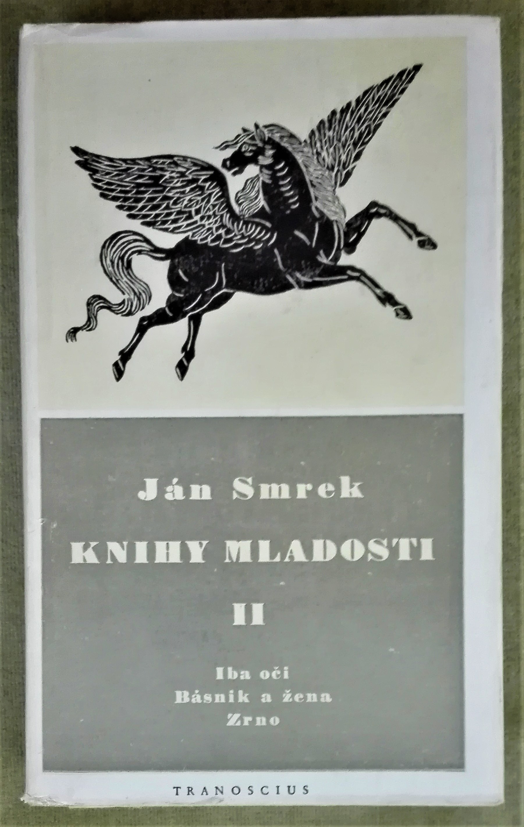 Druhý zväzok "Kníh Jána Smreka" obsahuje kompletné zbierky Iba oči, Básnik a žena a Zrno. Na predtitulnom liste autorov podpis, domicil a dátum.