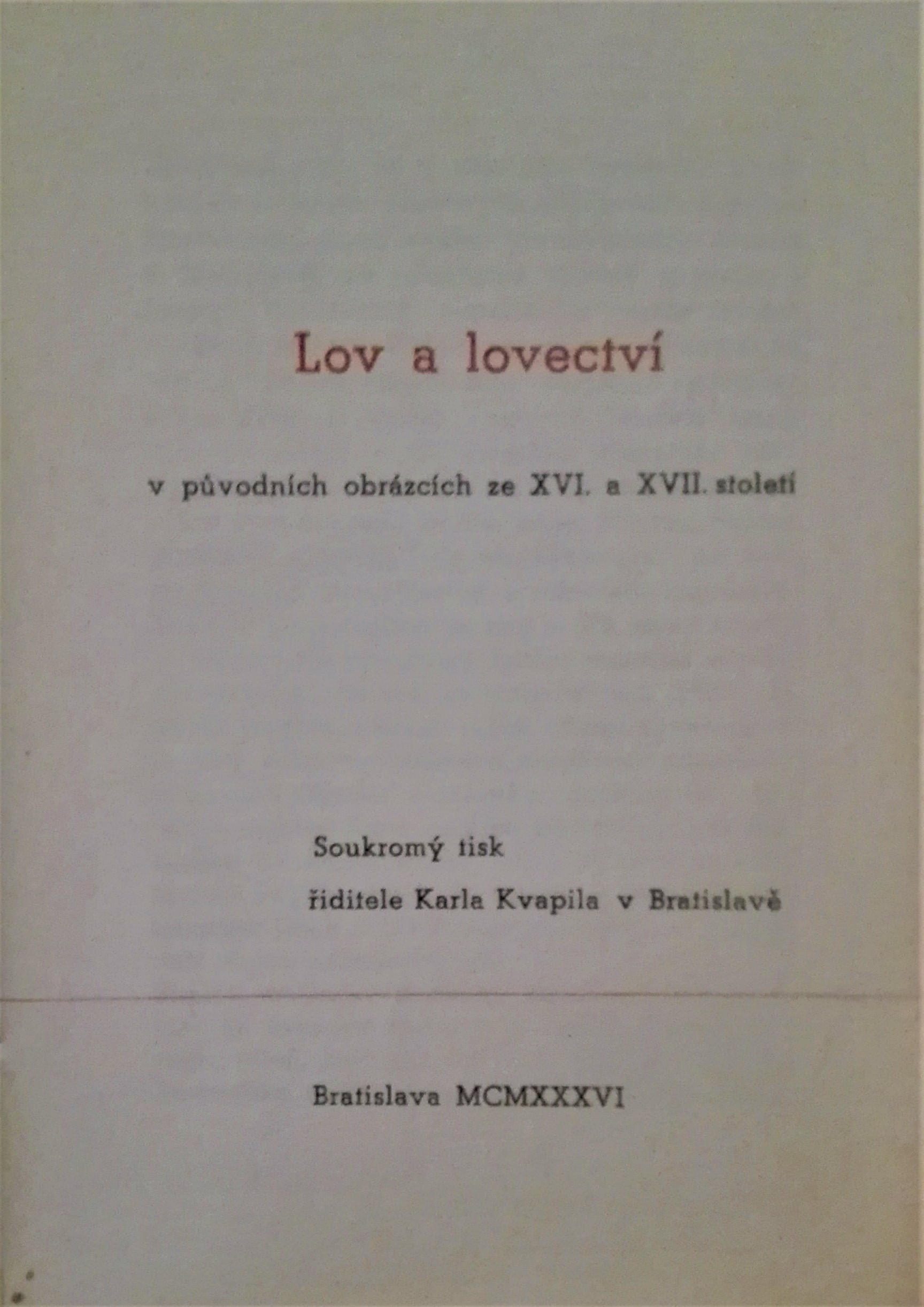 Z depozitu Spoločnosti Slovenského vlastivedného múzea v Bratislave vybral a úvodným slovom doprovodil dr. Št. Sommer. Vydal Karel Kvapil ako súkromnú tlač. Písmom "Beton" vytlačila Tlačiareň Universum v Bratislave. Jeden zo 100 vydaných a nepredajných exemplárov.
