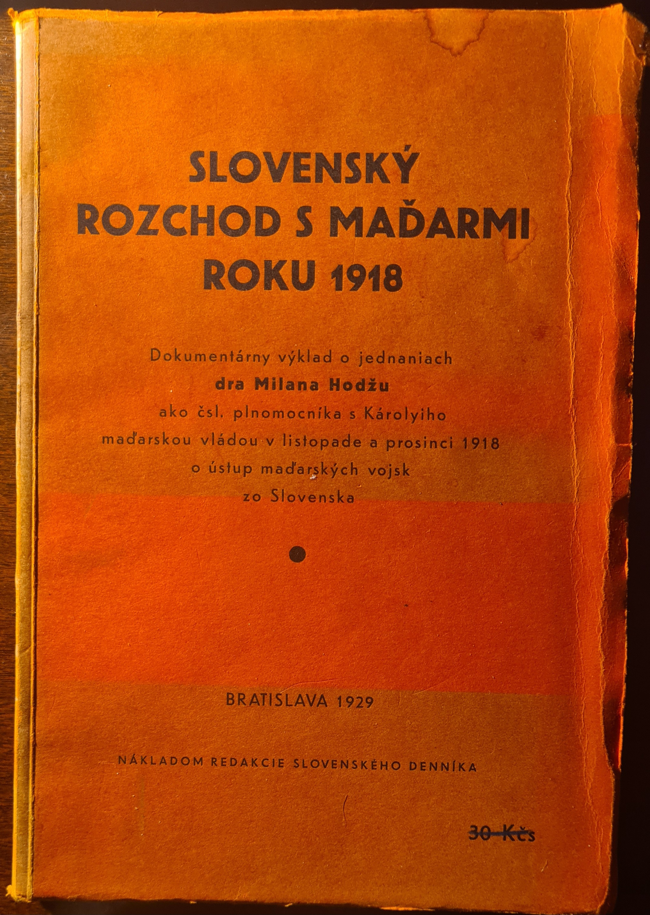 Výber textov zo Slovenského denníka, týkajúcich sa jednaní Dr. Milana Hodžu, splnomocnenca čsl. vlády s Károlyiho maďarskou vládou v novembri a decembri roku 1818 o odchode maďarských vojsk zo Slovenska.