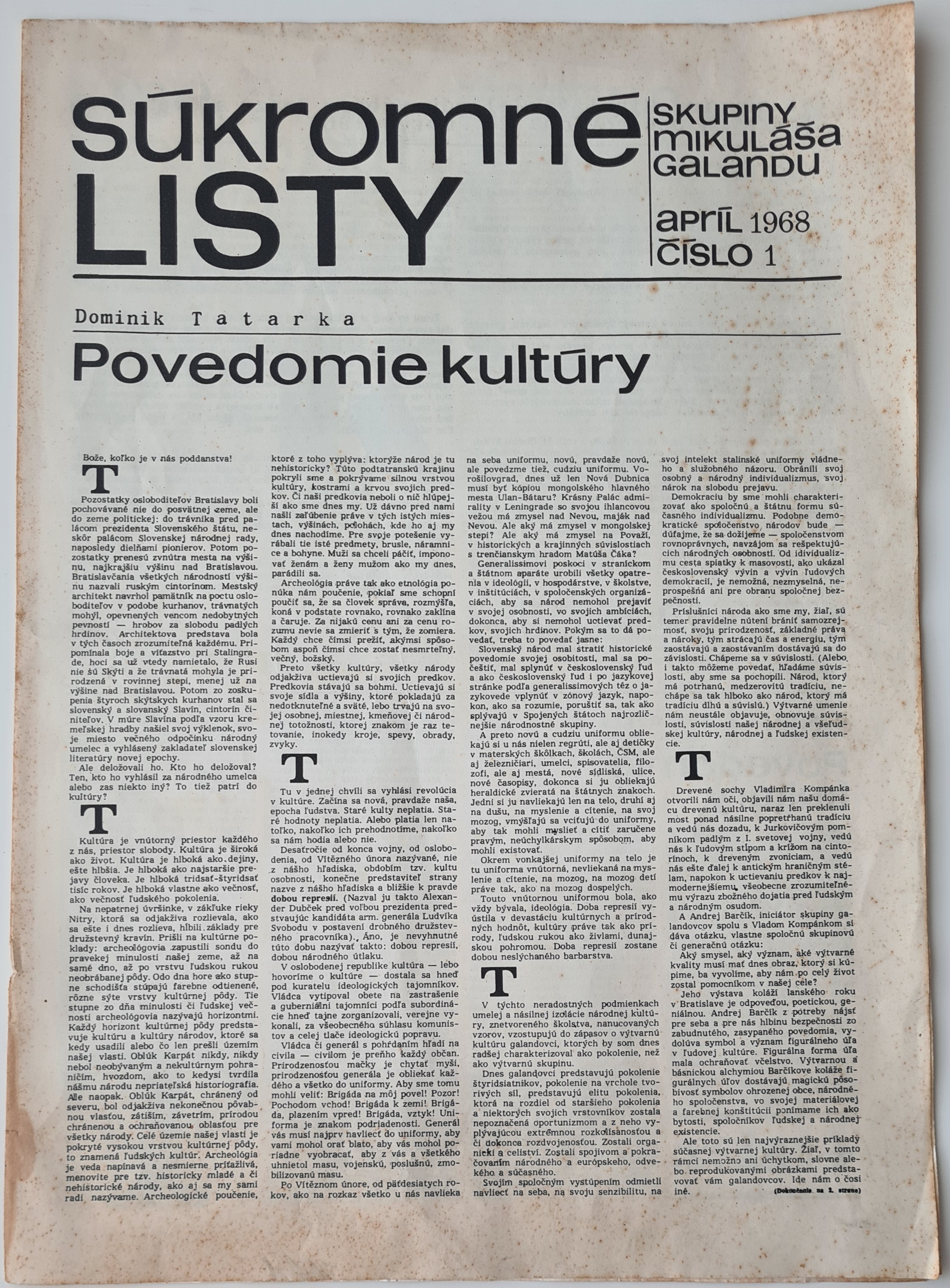 Súkromné listy Skupiny Mikuláša Galandu (torzo) (1968)