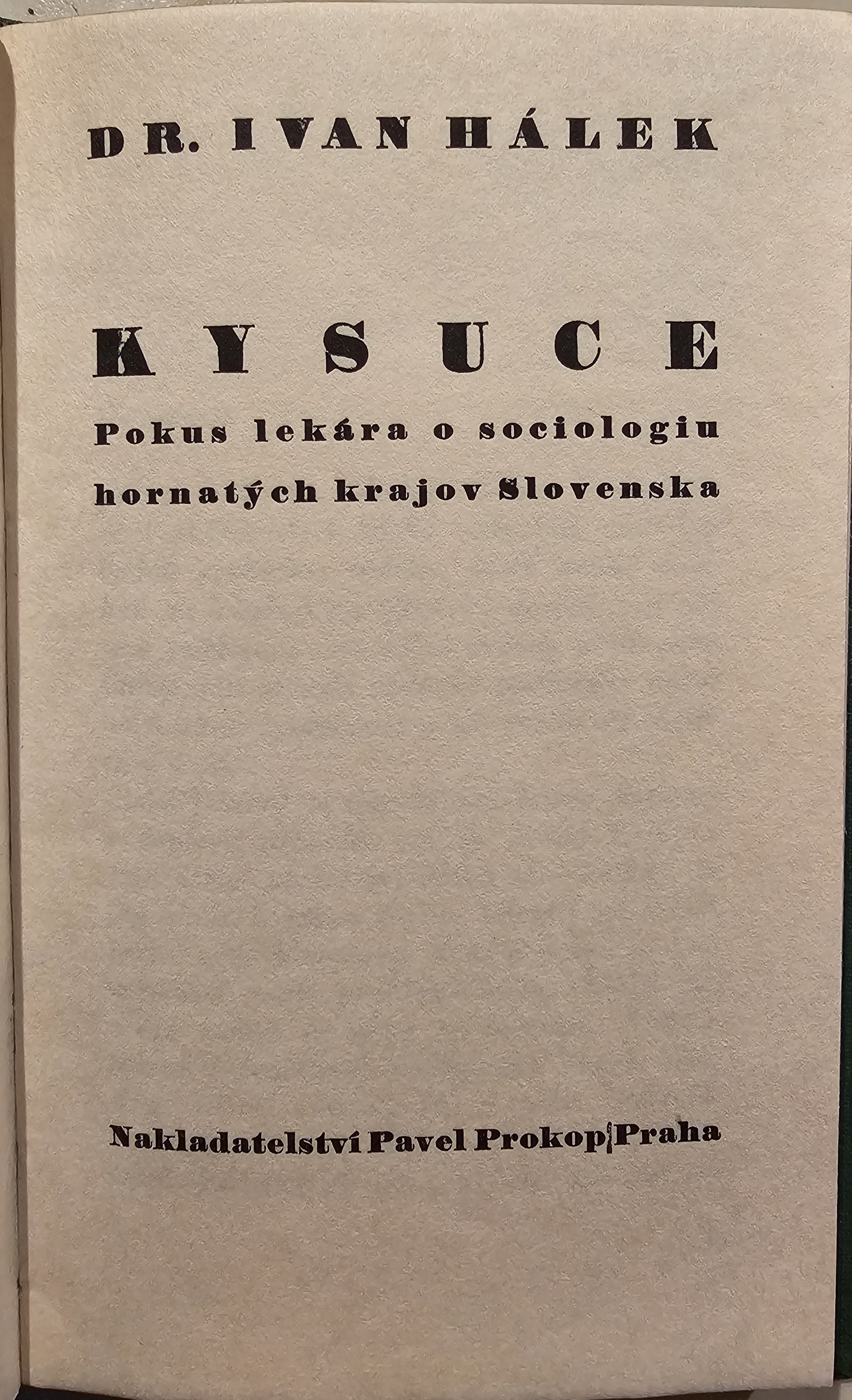 Ivan Hálek - Kysuce (Pokus lekára o sociológiu hornatých krajov Slovenska) (1937)