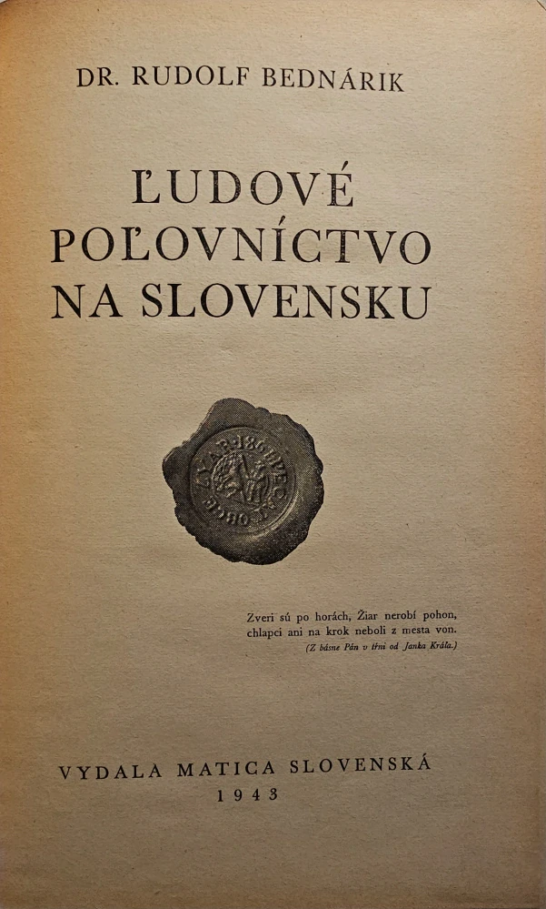 Rudolf Bednárik - Ľudové poľovníctvo na Slovensku (1943)