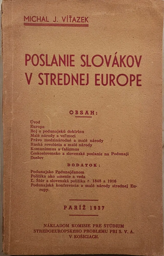 Michal J. Viťázek - Poslanie Slovákov v strednej Európe (1937)
