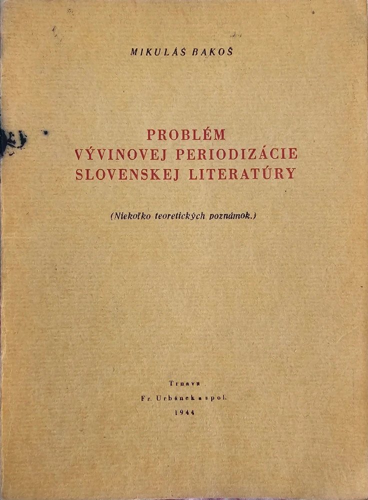 Mikuláš Bakoš - Problém vývinovej periodizácie slovenskej literatúry (1944)